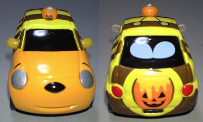 ディズニーキャラをモチーフにしたハロウィン限定仕様のトミカの様。